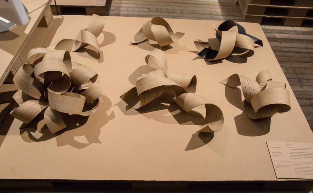Loop เป็นผลงานประติมากรรมที่เกิดจากการประยุกต์เทคนิคการดัดไม้ด้วยแม่พิมพ์มาใช้ในการทำชิ้นงานเพื่อเพิ่มความแข็งแรงให้แก่ตัววัสดุกระดาษ