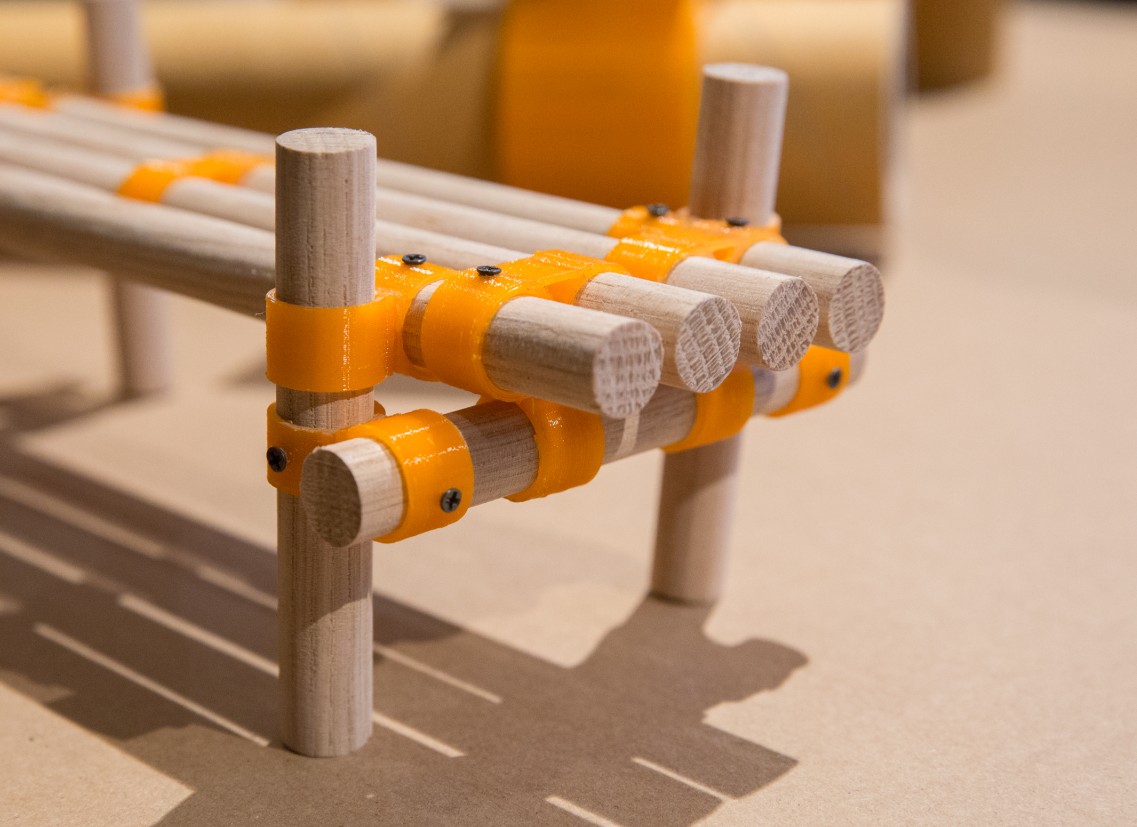 After considering numerous materials and by-products of paper recycling process, Atelier 2+selected paper pipe because it is strong, light and can be built into many scales of temporary constructions. They used 3D printer to create a universal joint system for this readymade material. Simply cut the paper pipe into the desire length and use the universal joints to create any DIY structures, from product, furnitureto architecture.