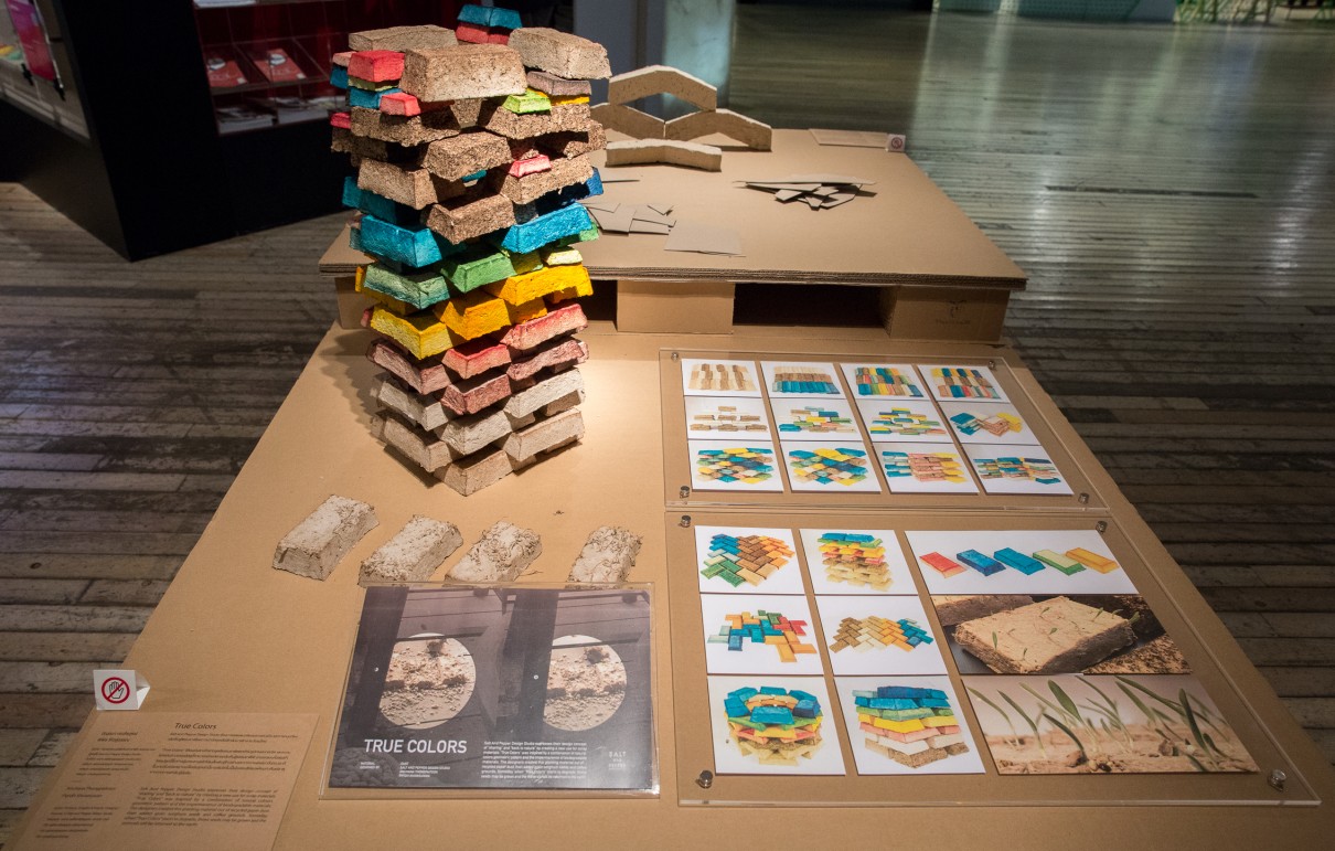 “True Colors” was inspired by a combination of natural colours, geometricpattern and the impermanence of biodegradable materials. The designers created this planting material out of recycled paper dust, then added grain sorghum seeds and coffee grounds. Someday, when“True Colors” starts to degrade, those seeds may be grown and the minerals will be returned to the earth.