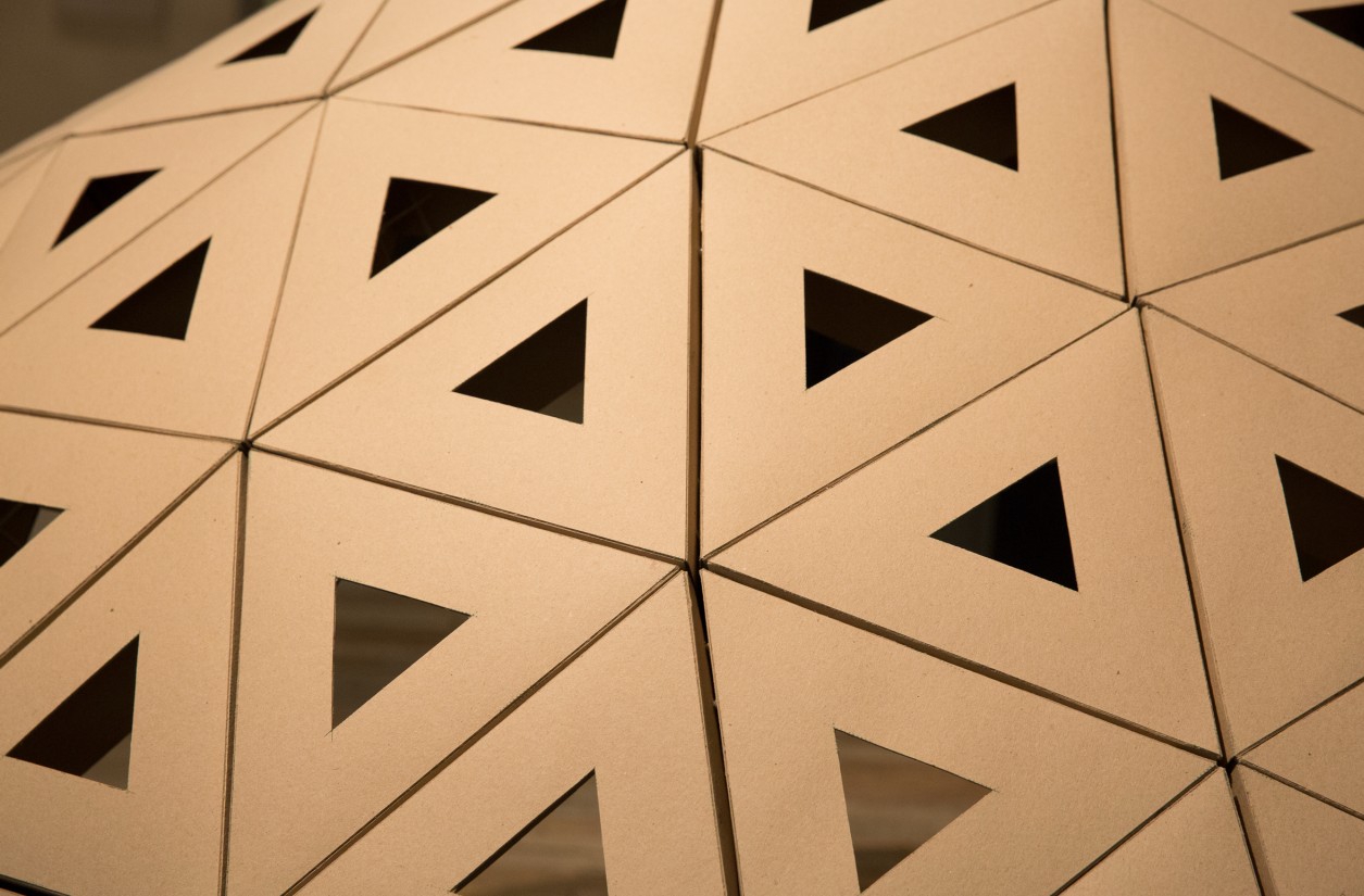 For “When a paper wants to be an arch”, parametric design was used in the design process to create the variation and gradation in each structural member. Thetriangle-shaped pieces are made more interesting by the fact that they all look similar but not the same in shape or size.