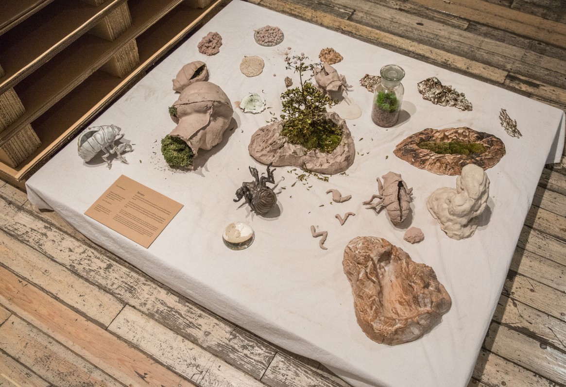 Karin’s living miniature landscape sculpture was inspired by his experiment with two different kinds of waste material. By mixing paper shreds together with clay factory waste, a new material was created to resemble natural stones.
