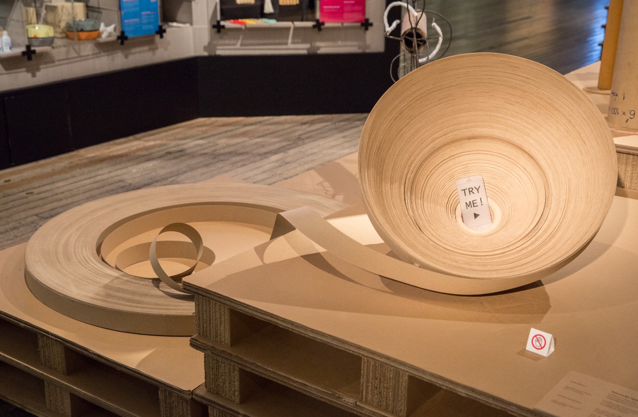 กระดาษเป็นวัสดุที่ให้ความยืดหยุ่นได้ดีและสามารถดัดขึ้นรูปสามมิติได้อย่างอิสระแต่เมื่อชิ้นงานที่ทำจากกระดาษต้องถูกติดตั้งหลายครั้งและเคลื่อนย้ายบ่อยๆ ก็มักมีปัญหาเรื่องความคงทนนุชจรินจึงทดลองนำแกนกระดาษที่เหลือใช้จากโรงงานผลิตกระดาษรีไซเคิลมาเป็นแม่พิมพ์ชิ้นงานที่ได้จากการดัดนี้มีความแข็งแรงขึ้นโดยที่ยังคงมีความยืดหยุ่นสำหรับประกอบขึ้นรูปชิ้นงานแบบสามมิติ