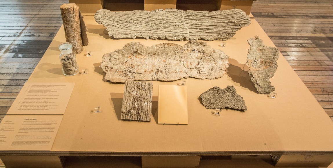 “Paper Bark” ถ่ายทอดเรื่องราวเปี่ยมความหมายจากการทำงานกับกระดาษรีไซเคิล เพื่อพาผู้ชมย้อนกลับไปตระหนักถึงที่มาสภาวะก่อนหน้าที่กระดาษสักแผ่นจะถูกผลิตขึ้นมา ผ่านการใช้งานในช่วงระยะเวลาหนึ่งแล้วเดินทางกลับเข้ามาสู่กระบวนการรีไซเคิลอีกครั้ง