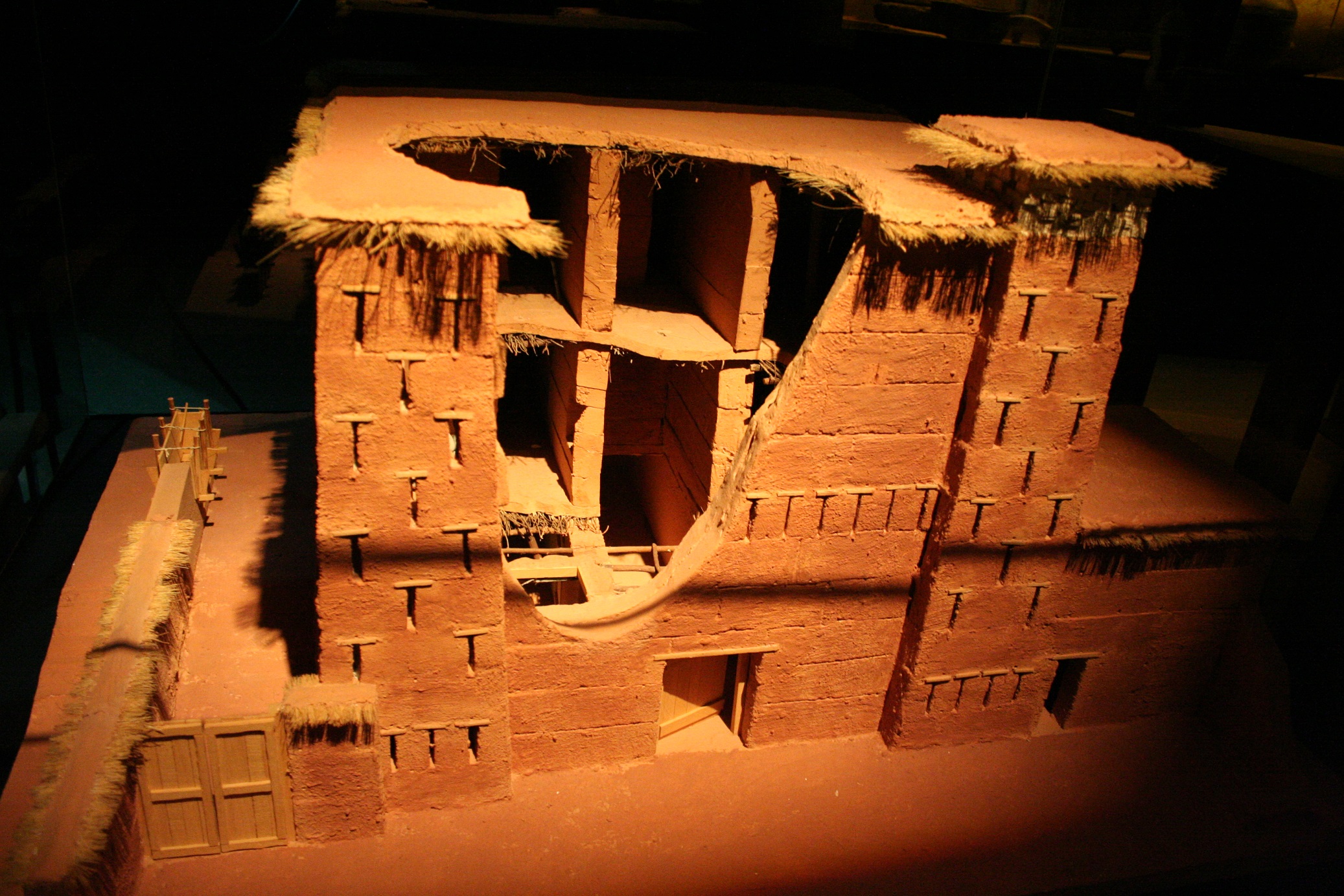 บ้านแห่งนี้ใช้กรวดหินบะซอลท์ปูเป็นฐาน ใช้อิฐไม่เผาไฟสำหรับทำกำแพงและใช้อิฐดินเหนียวเผาไฟก่อเป็นลูกบาศก์ตรงส่วนยอดสำหรับบันไดของบ้านนั้นมีลักษณะเฉพาะตัวซึ่งกินเนื้อที่ถึง 1ส่วน 4 ของพื้นที่แต่ละชั้นและมักสร้างบนฐานมุมฉากขั้นบันไดสร้างเป็นพื้นเอียงลาดรองรับด้วยคานไม้แล้วใช้ดินปั้นเป็นขั้นบันได