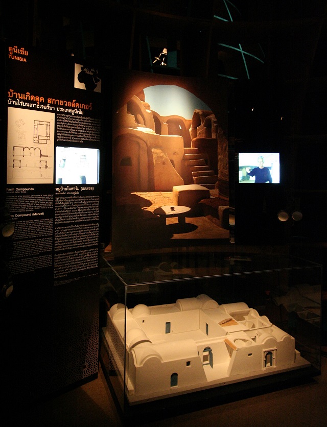 ย้อนรอยสู่รากเหง้าของความลึกซึ้งแห่งอารยะทางความคิดและสุนทรีย์แห่งการใช้ชีวิตภายในบ้านเรือนอาหรับจากมุมที่โลกไม่เคยเห็นมาก่อน นิทรรศการบอกเล่าเรื่องราวความหลากหลายของที่อยู่อาศัยและรูปแบบการใช้ชีวิตของ 10 ประเทศ ในกลุ่มแอฟริกาตอนเหนือแถบทะเลทรายซาฮาราและตะวันออกกลางบนคาบสมุทรอาหรับผ่านพัฒนาการของ 4 วิถีชีวิต จากอารยธรรมบนผืนทรายของชนเผ่าร่อนเร่เบอร์เบอร์และเบดูอิน สู่ความงามอันเรียบง่ายแต่ลึกซึ้งของบ้านดินบริเวณเทือกเขาแอตลาส ประเทศโมร็อกโก ไปจนถึงเสน่ห์ดึงดูดของลานกลางบ้านแห่งเมืองดามัสกัส ประเทศซีเรีย และงานออกแบบบ้านอาหรับยุคศตวรรษที่ 20 ในแนวคิดโมเดิร์นนิสม์