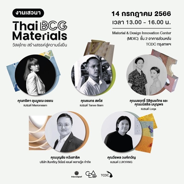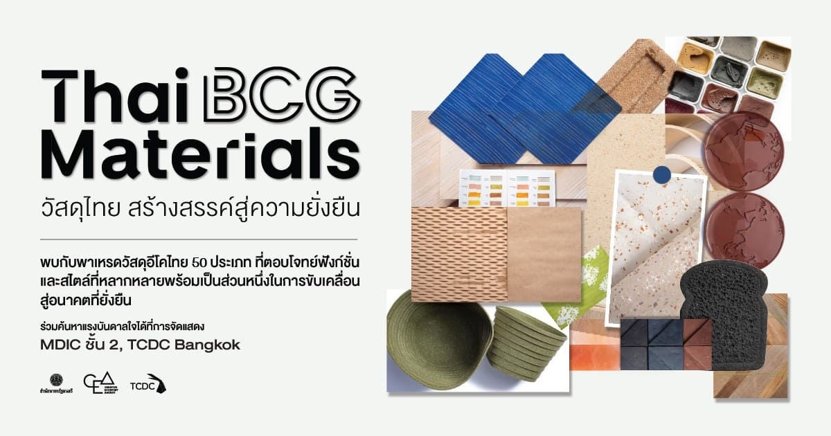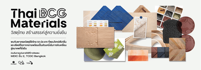 นิทรรศการ Thai BCG Materials วัสดุไทย สร้างสรรค์สู่ความยั่งยืน ณ Material & Design Innovation Center ชั้น 2 อาคารส่วนหลัง TCDC กรุงเทพฯ