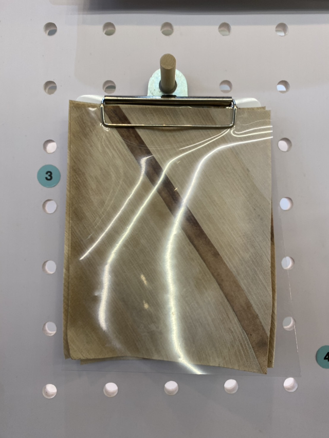 This wood alternative material is produced from fibers derived from agricultural waste available in the country, such as pineapple leaves, rice straw, corn husks, hemp fibers, and kapok fibers. It contains up to 85-90% natural materials, making it strong and durable. The material has a water-resistant coating, although it should not be submerged in water or used outdoors. It can be custom-ordered with a combination of desired materials to achieve the desired texture and properties.