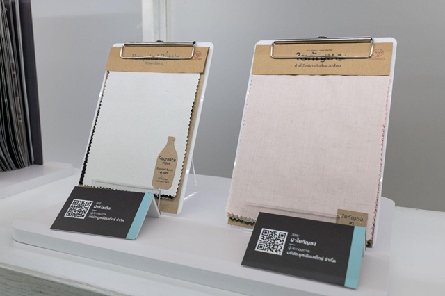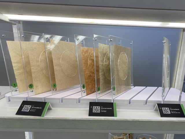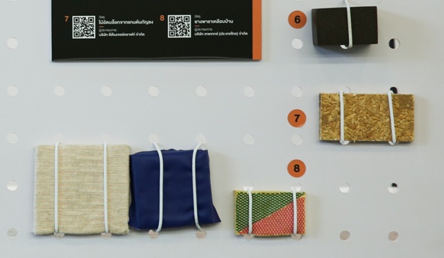 Materials Under the Concept of Sustainability Bio / Circular / Green Economy (BCG) are displayed in the “Thai BCG Materials” showcase. Almost 140 samples from over 50 companies are exhibited into three main categories; Architect & Interior, Fashion & Lifestyle, Art & Packaging.