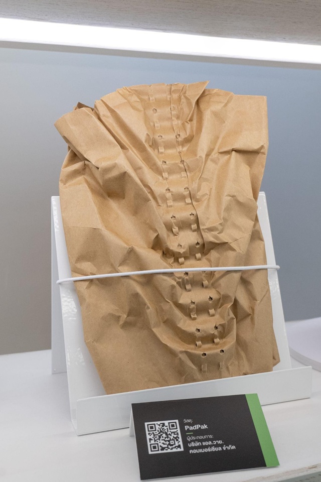 กระดาษกันกระแทก (PadPak) จากแบรนด์ Ranpak ประเทศเนเธอร์แลนด์ ผลิตจากกระดาษคราฟต์ที่มาจากป่าปลูกทดแทนเชิงพาณิชย์ ผ่านการรับรอง FSC (Forest Stewardship Council) สามารถย่อยสลายได้ตามธรรมชาติ ใช้สำหรับกันกระแทกสิ่งของในการบรรจุลงกล่อง ทดแทนการใช้พลาสติกหรือโฟม