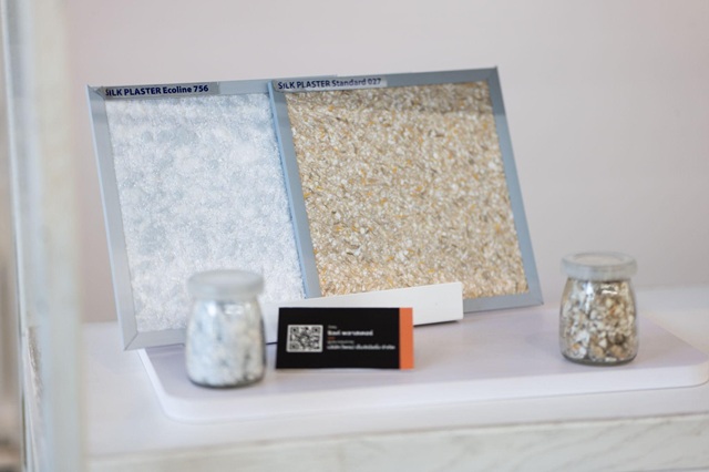Liquid wallpaper for interior decoration is made from natural fibers such as cotton, silk, bamboo fibers, and bark. It offers flexibility, is odorless, and contains no harmful chemicals. This wallpaper can be applied to various surfaces, both smooth and rough, including plastered walls, smart boards, wood, plaswood, metal, and glass.