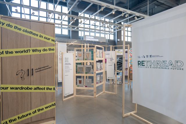 The ReThread exhibition takes you on a journey through the stories of fibers, materials, and innovations that are transforming the textile industry from a 'take-make-waste' model into one of creative and circular reuse.
