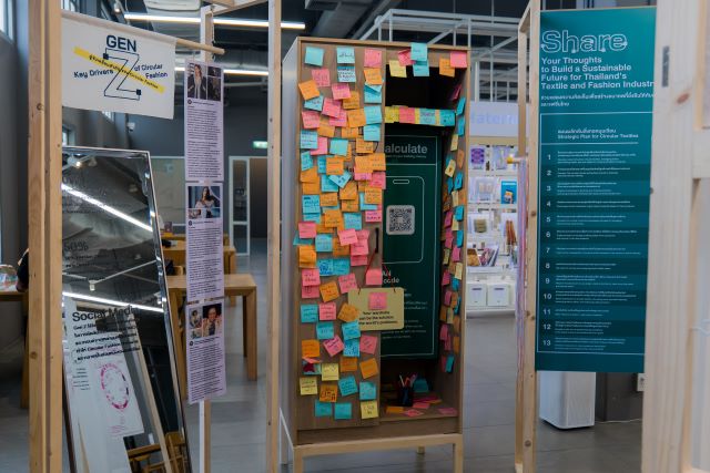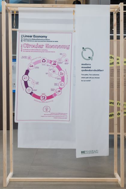 This exhibition is part of a research project exploring the drivers and challenges of a circular economy in the textile industry supply chain, organized by the Creative Economy Agency (Public Organization) in collaboration with Kasetsart University, with support from the National Science, Technology, Research and Innovation Fund.
