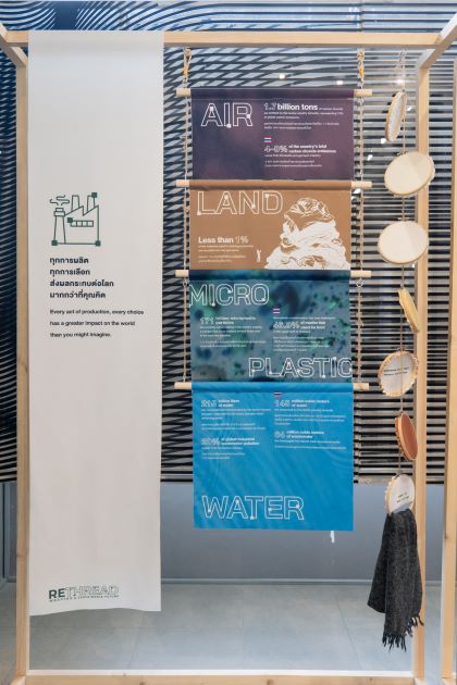 นิทรรศการ ReThread จะพาคุณเดินทางผ่านเรื่องราวของเส้นใย วัสดุ และนวัตกรรม ที่จะทำให้อุตสาหกรรมสิ่งทอเปลี่ยนจาก "ทิ้งแล้วทิ้งเลย" สู่การหมุนเวียนใช้ใหม่ได้อย่างสร้างสรรค์