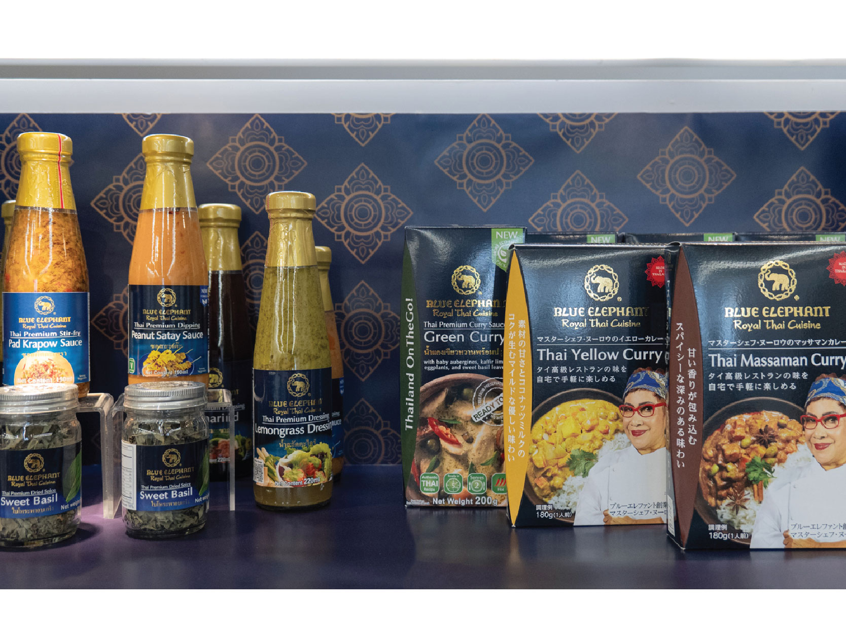 ซอสปรุงอาหารสำเร็จรูปจากสูตรต้นตำรับของเชฟนูรอ โซ๊ะมณี ถ่ายทอดรสชาติอาหารไทยแท้ผ่านพริกแกงและกะทิคุณภาพดี ผสานกับสมุนไพรไทยสดที่มีกลิ่นหอมโดดเด่น ซอสแกง Blue Elephant พร้อมเปลี่ยนทุกมื้อให้เป็นประสบการณ์แบบไทยในเวลาเพียง 5 นาที เพียงเติมโปรตีนและผักที่คุณชอบ ก็จะได้รสชาติที่เข้มข้น นุ่มนวล เสิร์ฟคู่ข้าวหอมมะลิอย่างลงตัว รสชาติระดับร้านอาหารในบ้านของคุณ